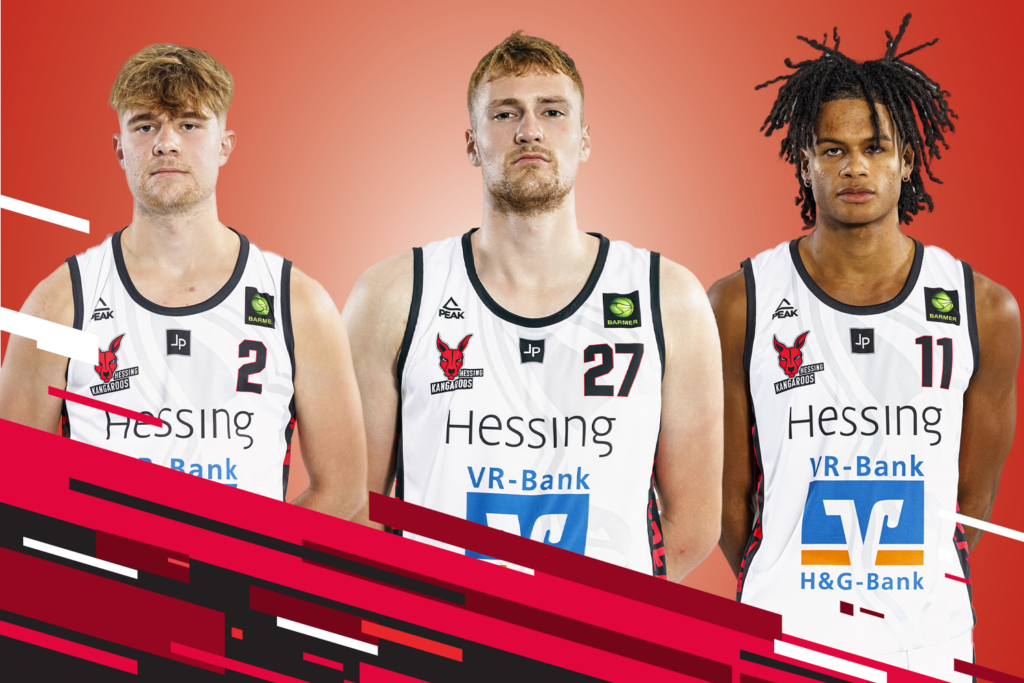 Nach Jannik Westermeir dürfen sich die Fans der BG Hessing Leitershofen/Stadtbergen auf drei weitere Akteure aus dem Vorjahr freuen. Noel Duarte, Ole Theiss und Benjamin Kuprat werden auch in der Saison 2024/2025 in der BARMER 2. Basketball Bundesliga für die Kangaroos auf dem Feld stehen. Duarte und Theiss, welche beide in Augsburg im dann 3. Semester studieren werden, verzichteten dabei auf eine Ausstiegsoption in ihren Verträgen. Der 22-jährige Duarte, welcher in der Vorsaison aus Reutlingen nach Augsburg gekommen war, verzeichnete in seiner ersten 2. Liga Saison in rund 17 Minuten Spielzeit 7,3 Punkte pro Partie. „Ich freue mich sehr, weiterhin Teil der Kangaroos zu sein und meine Reise mit dem Leitershofer Team und der Organisation fortzusetzen. Die Energie und der Zusammenhalt im Verein sind unglaublich, ich kann es kaum erwarten, wieder mit den Jungs auf dem Feld zu stehen. Wir haben große Ziele in dieser Saison“, freut sich der 1,88 Meter große Guard bereits auf den Saisonstart. Der nur ein Jahr jüngere Ole Theiss wartete vor allem am Ende der letzten Saison mit sehr guten Spielen auf, kam so noch auf knapp 10 Minuten Spielzeit pro Match und erzielte gleichsam 2,4 Punkte als auch 2,4 Rebounds pro Partie. „Ich freue mich auf die neue Saison. Wir können als Team viel erreichen und natürlich möchte ich auch persönlich den guten Trend aus dem Vorjahr fortsetzen“, so der 2,08 Meter Hüne. Der dritte im Bunde, Benjamin Kuprat, feierte vor Kurzem erst seinen 20. Geburtstag. Der ehemalige BBA-Jugendspieler spielte im letzten Jahr vornehmlich im Regionalligateam, kam aber auch bereits neun Mal in der PRO B zum Einsatz, wo ihm seine ersten Punkte und auch sein erster erfolgreicher Dreipunktewurf gelang. BG-Headcoach Emanuel Richter freut sich auf die bewährten Kräfte im Team: „Ich bin sehr glücklich, Noel, einen der Lieblingsspieler unserer Fans, wieder im Team zu haben. Mit seiner Physis und Athletik begeistert er mich in der Offensive und Defensive gleichsam. Ole hat sich letztes Jahr in allem verbessert, Wurf, Technik, Schnelligkeit und Basketball IQ. Seine Bedeutung in der Rotation wird zunehmen. Und auch Benni wird seine Chance bekommen. Er arbeitet wahnsinnig hart und hat sich binnen eines Jahres enorm verbessert, hat einen guten Dreipunktewurf und Play-Maker Qualitäten. Er kann auch unbegrenzt in der Regionalliga spielen und so wertvolle Spielpraxis sammeln und Verantwortung übernehmen“, so Richter. BG-Geschäftsführer Wayne Pittman zeigt sich ebenfalls zufrieden: „Die jungen Spieler werden in ihrer zweiten Saison von den Erfahrungen im ersten Jahr profitieren. Ich bin überzeugt, dass alle den nächsten großen Schritt gehen werden“, so Pittman.
